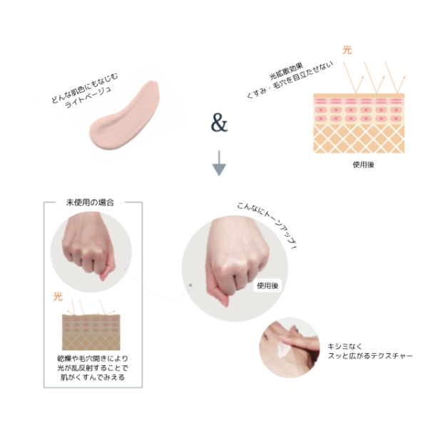 CCbaseのナチュラルな肌色補正と光拡散効果によるトーンアップ。