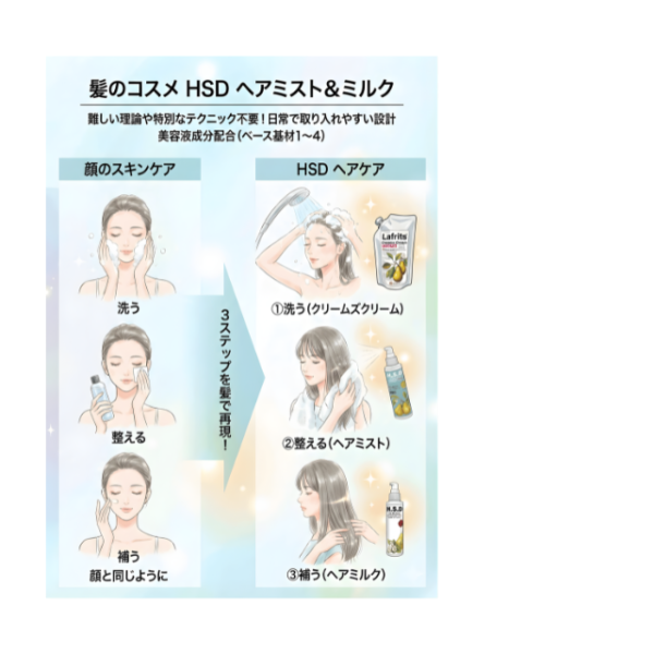 幅広い方が毎日スキンケアと同じようにヘアケアができるミストとミルクです。